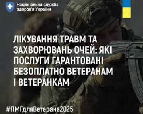 ЛІКУВАННЯ ТРАВМ ТА ЗАХВОРЮВАНЬ ОЧЕЙ: ЯКІ ПОСЛУГИ ГАРАНТОВАНІ БЕЗОПЛАТНО ВЕТЕРАНАМ І ВЕТЕРАНКАМ
