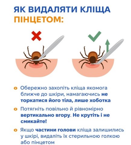 Якщо такої змоги немає: видаліть кліща пінцетом або спеціальним інструментом: