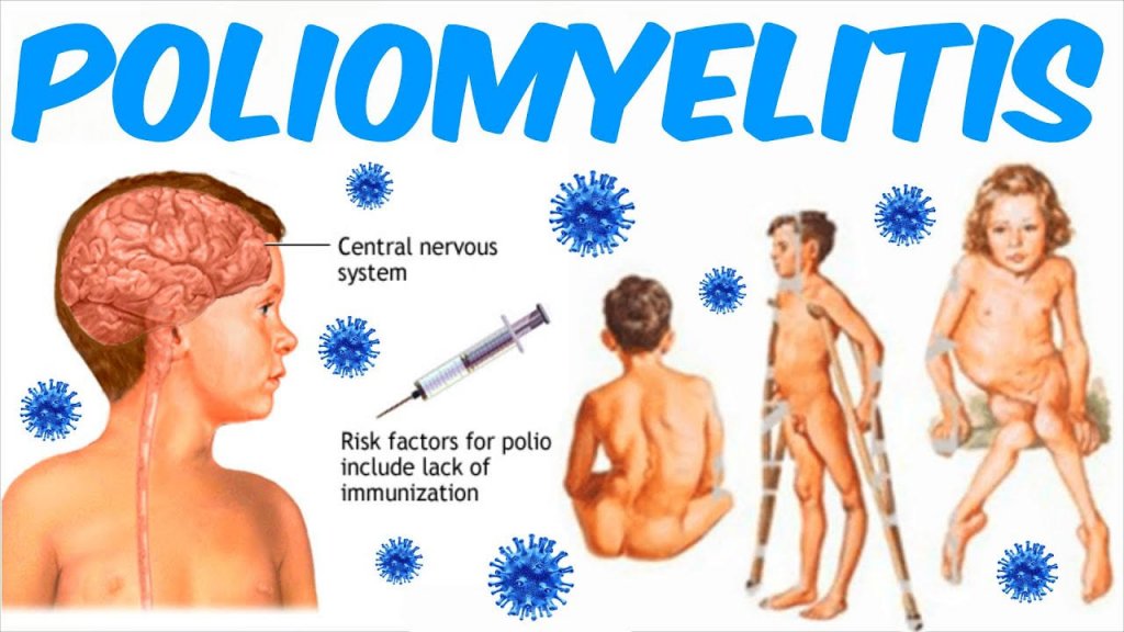 Поліомієліт (поліо) — це висококонтагіозна (простіше кажучи, дуже заразна) інфекційна хвороба, що зазвичай передається фекально-оральним шляхом: через заражену воду та їжу, брудні руки тощо. Вірус уражає центральну нервову систему, насамперед рухові нейрони спинного мозку, що може призводити до гострого вʼялого паралічу м’язів (тяжкого стану, що характеризується раптовим розвитком м’язової слабкості або паралічу) і навіть смерті через ураження дихальних м’язів.