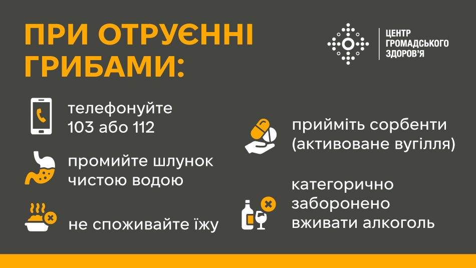 Підвищена вологість та висока температура на початку жовтня відкрили початок осіннього сезону грибів. Разом із тим, різко зросла кількість отруєнь. За оперативними даними, з початку 2024 року, від отруєння дикорослими грибами постраждали 90 осіб, із них — 19 дітей, тільки за перші два тижні жовтня отруїлися грибами 55 людей, із них — 9 дітей. Завдяки оперативній роботі медиків всі постраждалі живі та отримують необхідну допомогу.